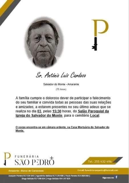 É com profundo pesar que cumprimos o doloroso dever de participar a todos os associados e amigos do Folgosa da Maia Futebol Clube, o falecimento do Sr. António Luís Cardoso.
