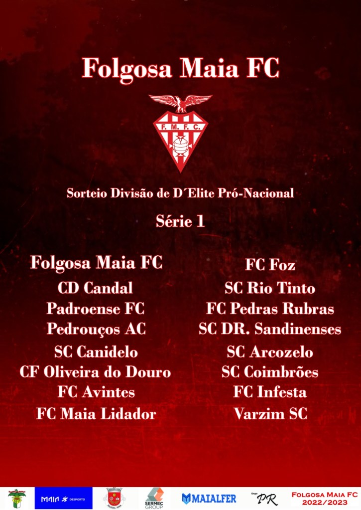 No sorteio, realizado no dia de ontem, o Folgosa Maia F.C. irá competir na série 1.