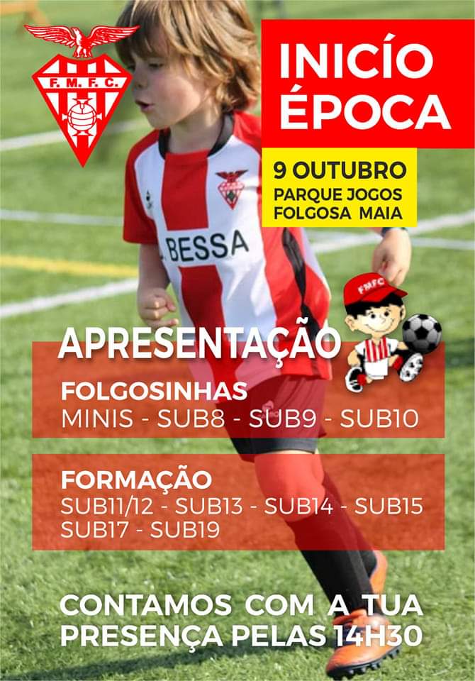 No próximo domingo, dia 09 outubro pelas 14h30, ocorrerá no Parque de Jogos de Folgosa a apresentação de todas as equipas da formação do Folgosa Maia F.C. .