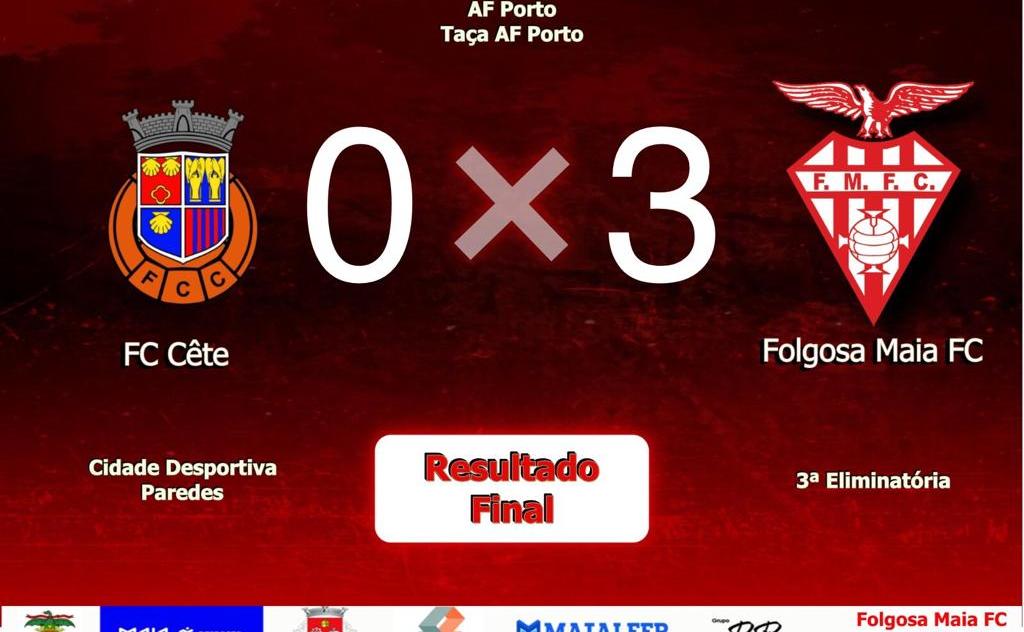 A equipa sénior do Folgosa da Maia F.C. enfrentou o FC Cête para a Taça AF Porto. O encontro terminou com vitória da nossa equipa por 0 – 3, com passagem à próxima fase da taça.