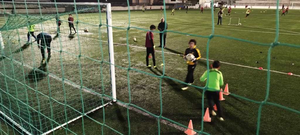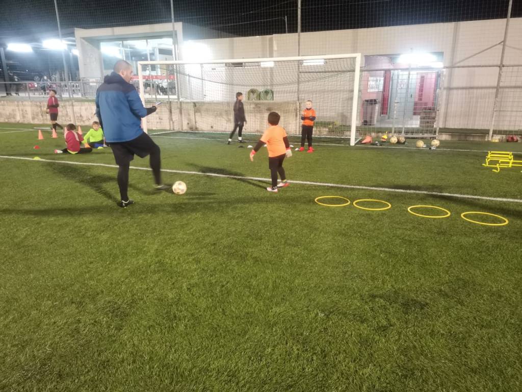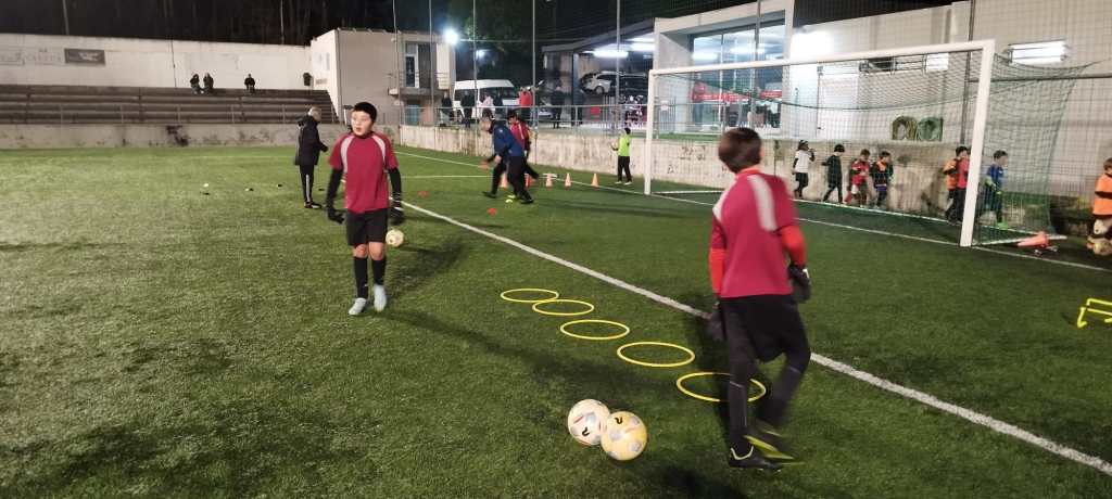 Nós trabalhamos os mais pequenos a posicionar na baliza e ensina-los como se deve no jogo a estar a orientar os colegas.