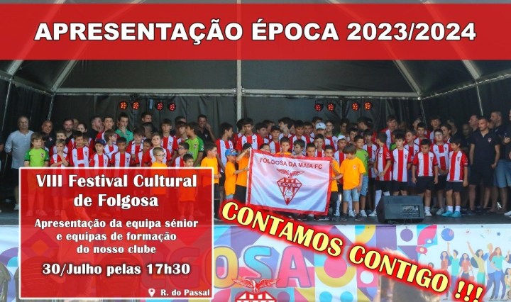 No passado dia 30 julho decorreu no VIII Festival Cultural de Folgosa a apresentação da equipa sénior do Folgosa da Maia F.C., equipamentos e patrocinadores de todos os escalões da formação de competição do clube para a época 2023/2024, assim … Continuar a ler FMFC | Apresentação das equipas, época 2023/2024