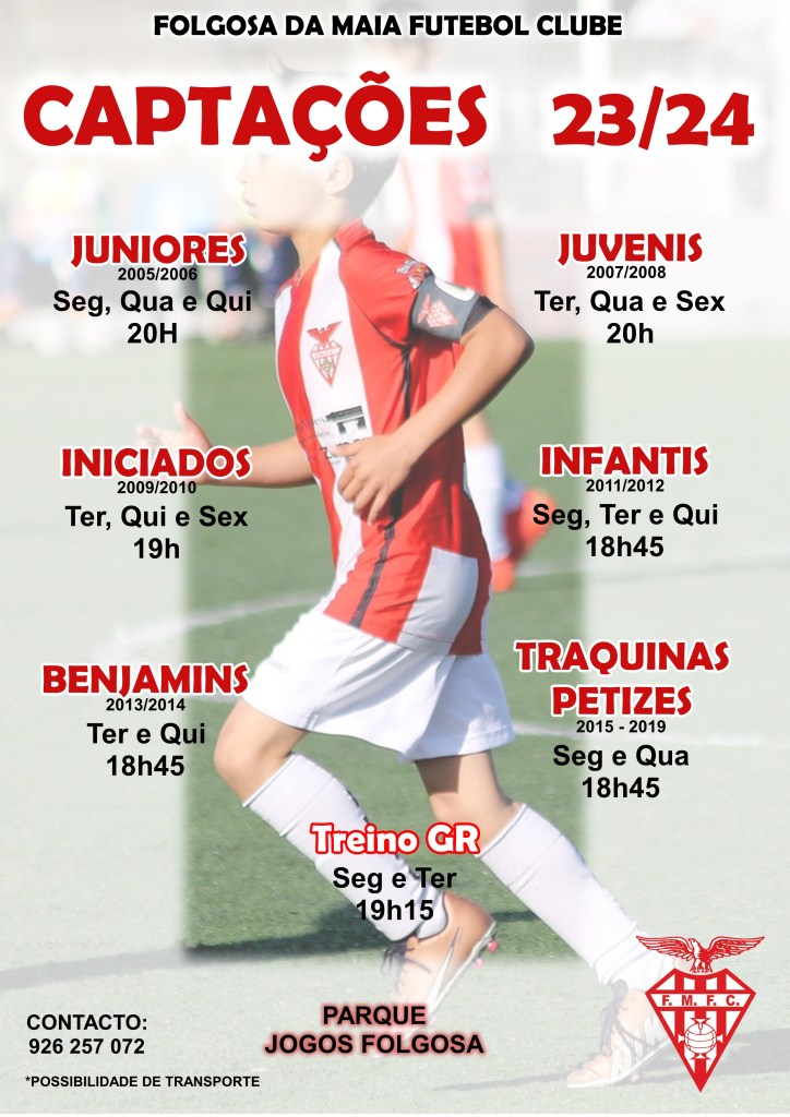Se nasceste entre 2005 a 2019, vem experimentar e fazer parte da próxima época 2023/2024 do Folgosa da Maia F. C..