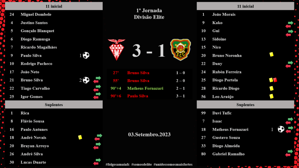 O encontro terminou com a nossa equipa a ficar com os três pontos, com o resultado final de 3 – 1, conquistando, em casa, a vitória.