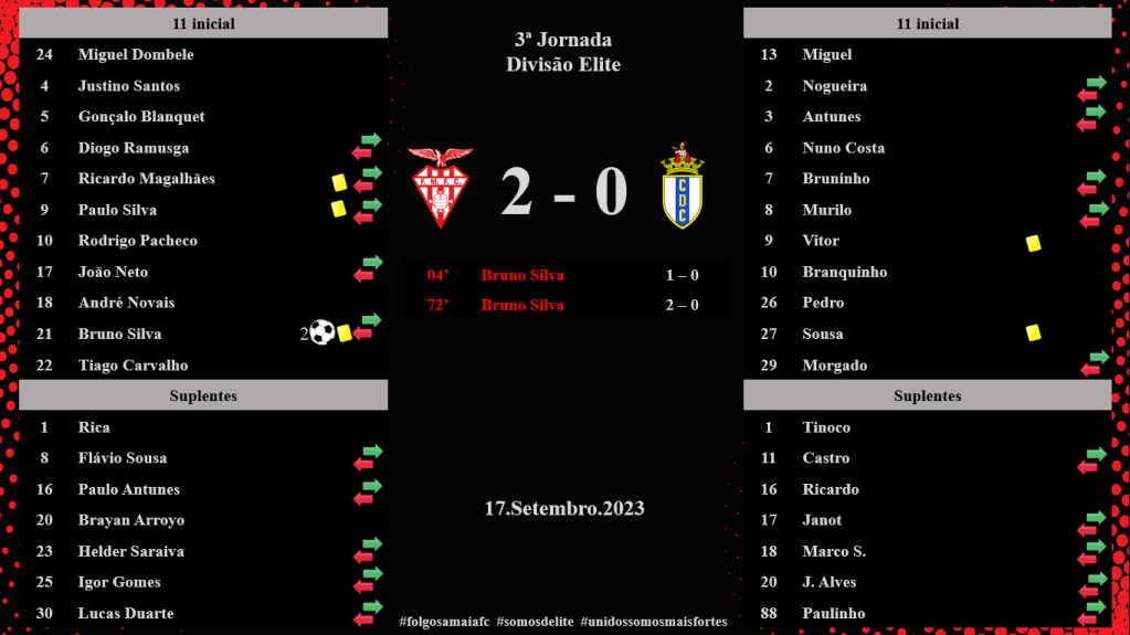 O encontro terminou com a nossa equipa a ficar com os três pontos, com o resultado final de 2 – 0, conquistando, em casa, a segunda vitória.