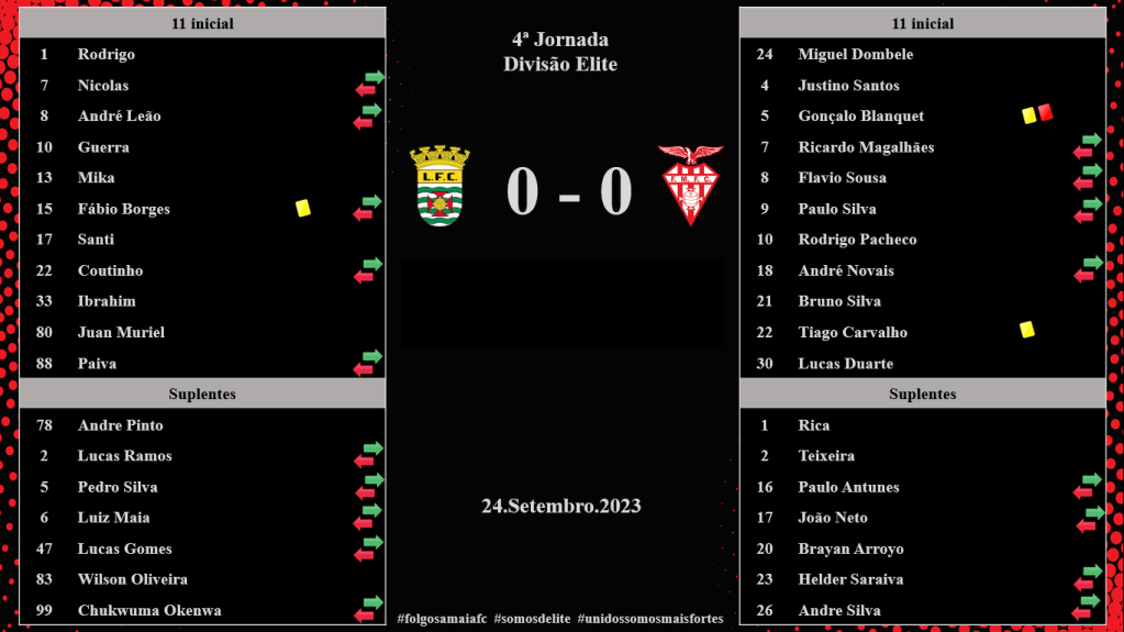 A equipa sénior do Folgosa da Maia F.C. foi a casa de um dos candidatos à subida, o Leça F.C. , partida a contar para a 4ªJornada da Divisão de Elite, onde os pontos ficaram repartidos.