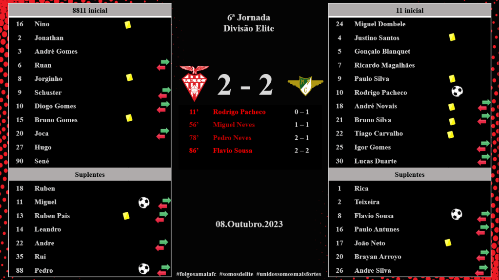 A equipa sénior do Folgosa da Maia F.C. deslocou-se a Sandim para defrontar o Dragões Sandinenses, partida a contar para a 6ªJornada da Divisão de Elite, onde os pontos ficaram repartidos. .