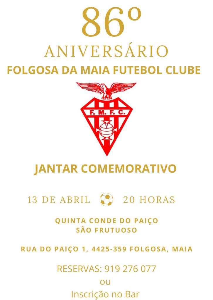O clube festejará o seu 86º aniversário no próximo dia 13 abril, onde toda a família folgosense estará presente e reunida para celebrar esta data tão especial.