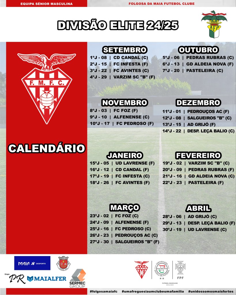 A nossa equipa sénior masculina, liderada por Hugo Reis, defrontará na 1ªJornada da Divisão Elite, o CD Candal no Parque Jogos de Folgosa, os seguintes 5 jogos são os seguintes.