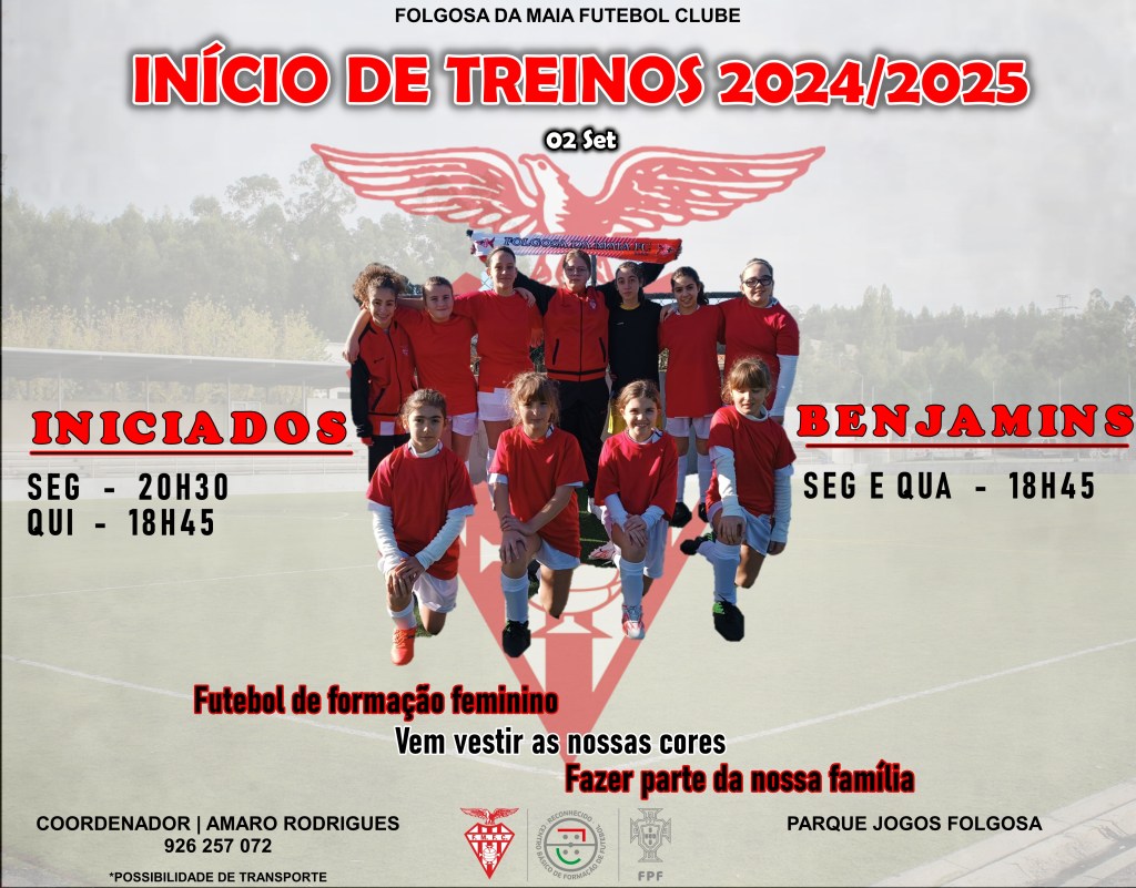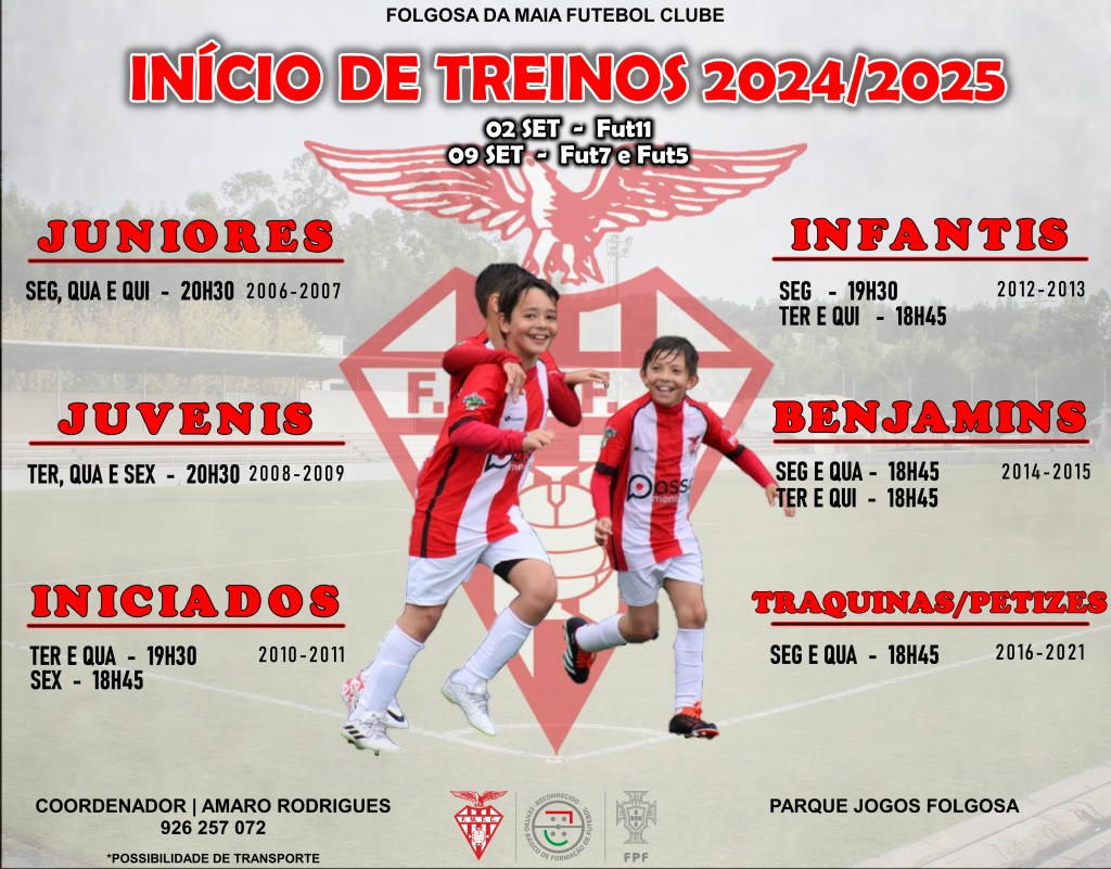 Inicia amanhã hoje os treinos das nossas equipas de formação para a época desportiva 2024/2025.