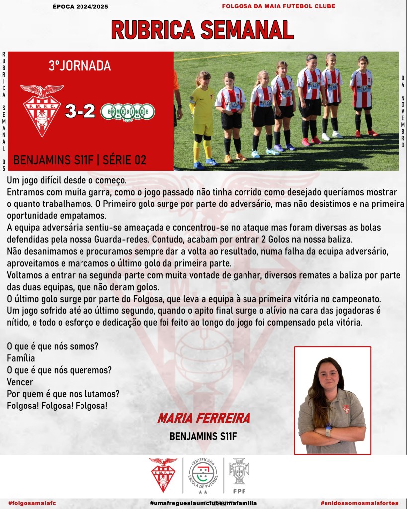 Jogo em análise – 3ºJornada Benjamins S11 Feminino