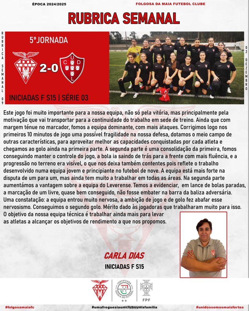 Jogo em análise – 5ºJornada Iniciadas F S15