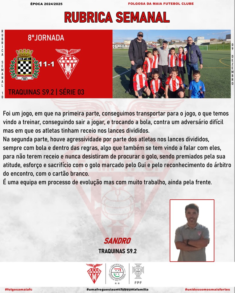 “Rubrica Semanal” – esta pequena rubrica e iniciativa pretende dar foco a um jogo por fim de semana competitivo, de um dos nossos escalões de formação do nosso clube.