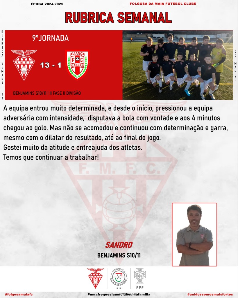 Análise – 9ªJornada Benjamins S10/11