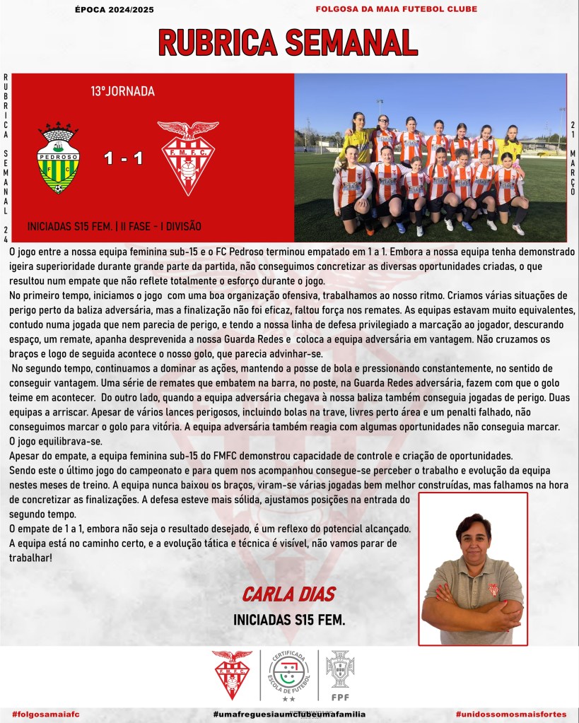 Análise – 13ªJornada Iniciadas S15 Fem.